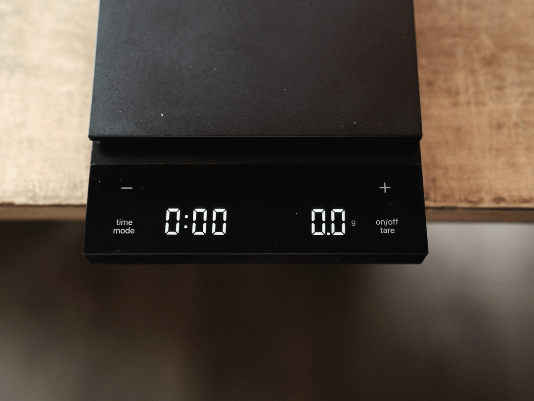 昨今のコーヒースケールは、0.1g単位で計量できることやカウントアップタイマー機能はあたりまえに搭載されている。