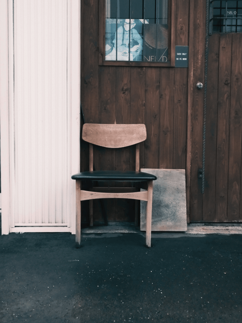 木製の扉とcoffeeのサインが〈NELD COFFEE CLUB〉への入り口。